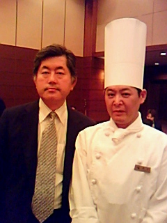 今日は、兵庫県洋菓子協会の総会が、神戸のポートピアホテルで行なわれなした。司会を勤めさせていただき、大役が終わった後の、ポートピアホテルの製菓長、坂本くんのとの2ショットです。