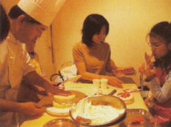 ファミリアさんで、昨年のクリスマスケーキに続き、今年は真夏だったのでタルトの講習会をさせていただきました。5歳までの子供さんとお母さんの参加のもとでさせていただきましたが、フルーツを包丁で切ったりすることがあるので、怪我がでないように注意しました。仕上げの時の子供のうれしそうな顔を見ると、とてもうれしいく、来年もご依頼があったら、ぜひ受けさせてもらいたいと思っています。