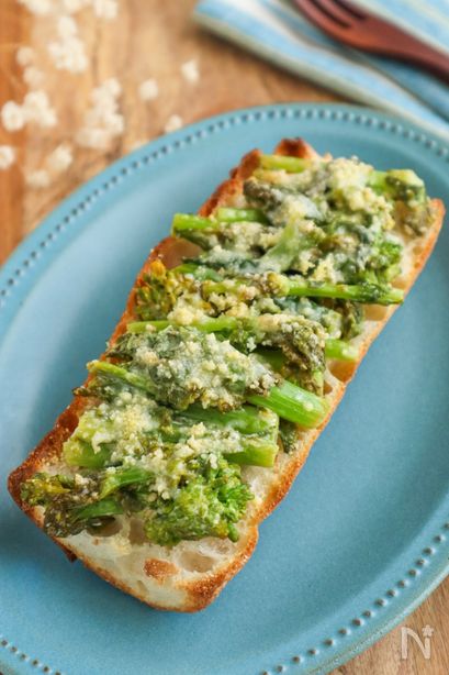 春の味覚『菜の花』を味わうタルティーヌ♡ レモンごまマヨネーズで和えた菜の花を バゲットにのせて焼きました。 菜の花のほろ苦さと チーズの香ばしさが美味しい♫ 朝ごはんやランチにもぴったりです。 菜の花の新たなレパートリーにいかがですか?