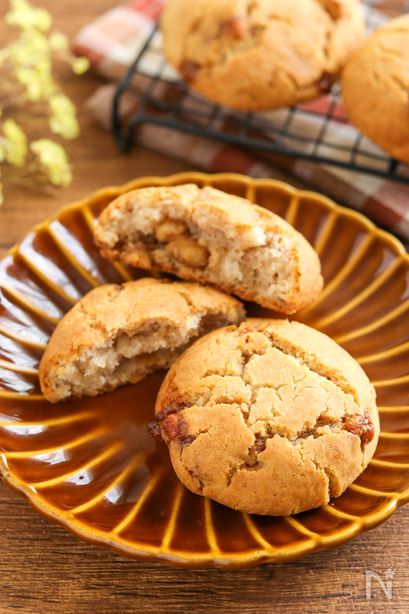 外はサクッと、中はほろっと♫ メープルシロップでキャラメリゼしたくるみ入りの ちょっと贅沢な米粉スコーンです。 メープルキャラメルのコクのある甘さが美味しく くるみのカリッと食感もアクセントになっています♡ 混ぜて丸めて焼くだけ♪ 卵もバターも使わず手軽に作れちゃいますよ。