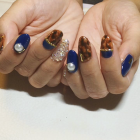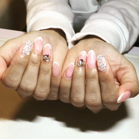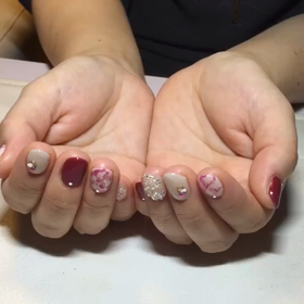 チュールグレージュ×ビッグビジュー 卒業式ネイル