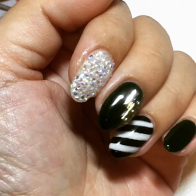 ★Myネイル★ クリスタルピクシー×深緑×斜めストライプネイル