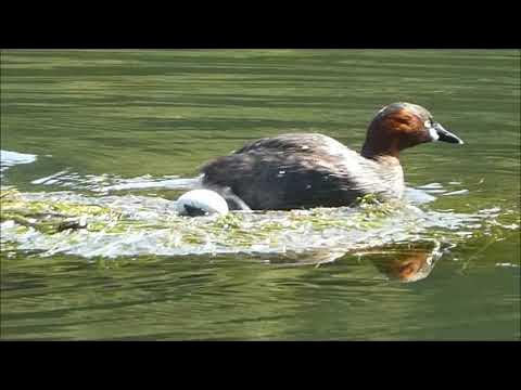 土曜日の夜から日曜日未明に雨風が強かったので、藻草の上に巣を作っているカイツブリたちがどうしているか見て来ました。