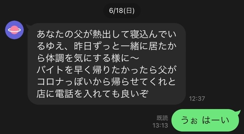父がコロナなのに家をうろつくなど明らかなヤバさもあり。これが後々(今、おそらく未来にも)に影響します。