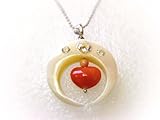 夜光貝の月をモチーフにした、桃色珊瑚のハートとの組み合わせがロマンティックなペンダント。