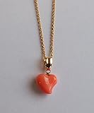 ほのかな色合いの桃色珊瑚から手作りのハートペンダント。