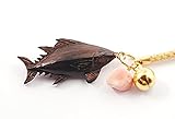 土佐の一本釣りで有名なカツオを紫檀から彫り上げ根付に仕上げました。目は黒蝶貝を使用。天然珊瑚をあしらっています。
