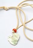 ■ 素材: 夜光貝(にわとり) / 鹿の角ビーズと桃色珊瑚ビーズ / レザーコード(合皮 ベージュ)
