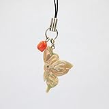 奄美大島沖 夜光貝から蝶をモチーフにしたストラップを手作りし、天然珊瑚をあしらいました。目には黒蝶貝を使用。
