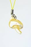 しいたけをモチーフに、高瀬貝からハンドメイドし、ストラップに仕上げました。天然珊瑚をあしらっています。