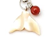 - 【福招き】 カニ 夜光貝製 ストラップ 天然珊瑚付き