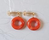桃色珊瑚から、フープピアスをハンドメイドで仕上げました。