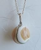 奄美大島沖の夜光貝から、まんまるドロップ型の夜光珠をハンドメイドし、ペンダントに仕上げました。