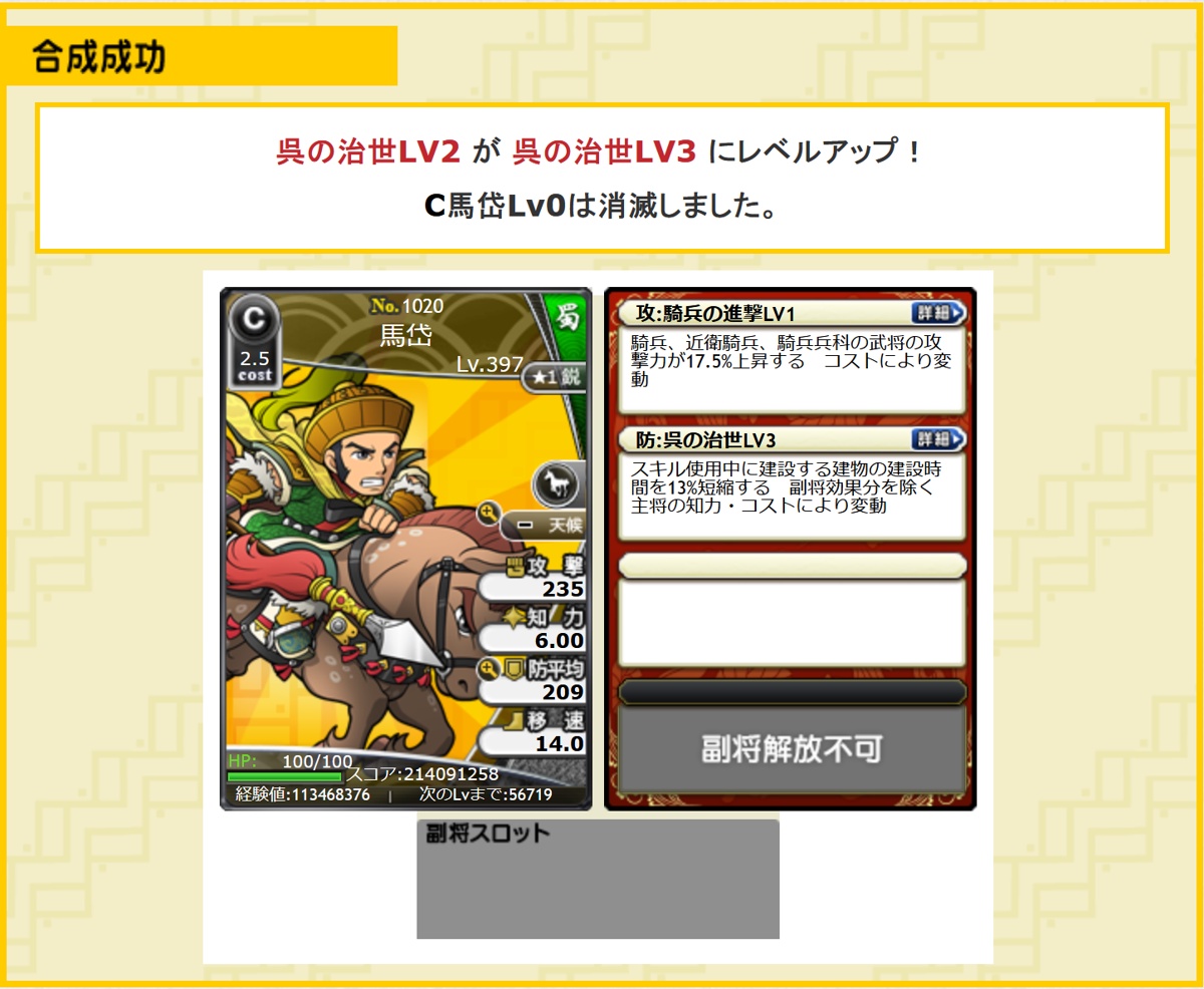 なので副将に使えるかなと思う反面、 パッシブの神遠攻シリーズが実装された今わざわざ使う価値があるのかな...というのが本音です。