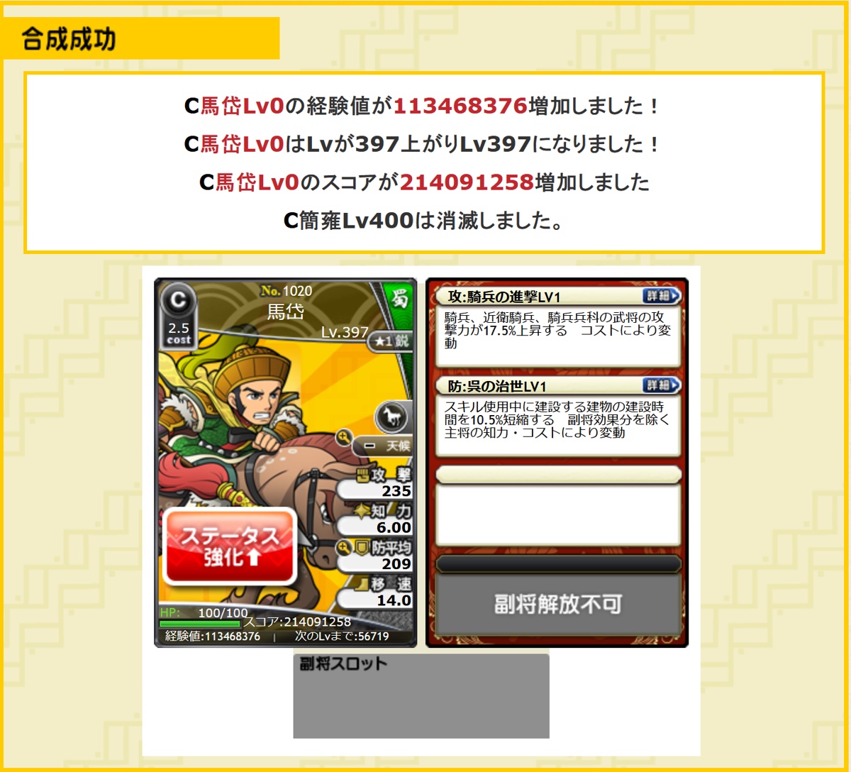 知力はUR1コストの中なら1位ですし、スキルも非常に優秀文句なし