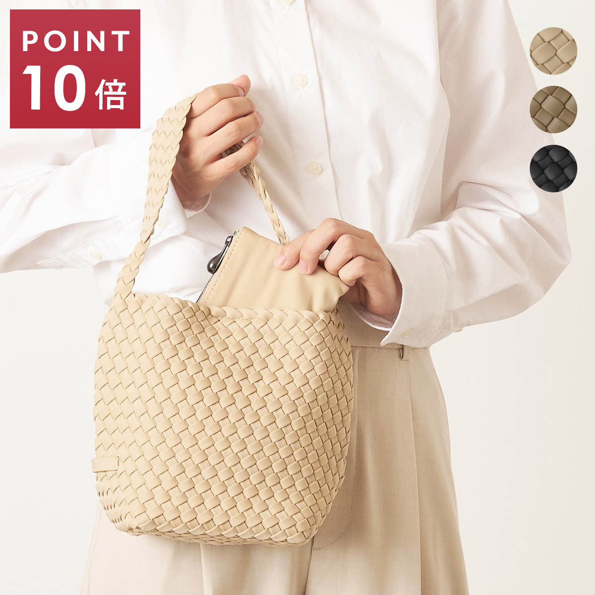 カジュアルな素材ながら、職人がひとつひとつ手織りした高級感ある仕上がりで人気の『ナゲディ』。コンパクトなのに収納力もある「NOMAD SMALL HOBO」なら軽やかな春のお出かけにぴったりです。