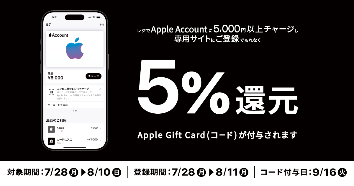 ちょうどいまコンビニ3社でレジでApple AccountにチャージするとApple Accountに5%還元するキャンペーンをやっている。