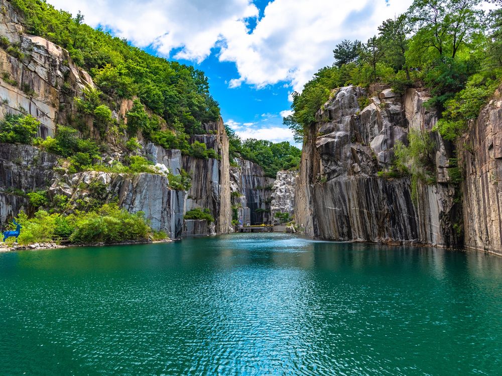 京畿道(キョンギド)の北部にあり、「抱川(ポチョン)石」と呼ばれる花こう岩を採取する採石場だった場所です。石は丈夫で美しく「青瓦台(チョンワデ)」や「国会議事堂」、「仁川国際空港」など様々な場所に使われましたが、採石できなくなると2002年に閉鎖。その後、市が彫刻公園、モノレール、人工の湖「天柱湖」など整備・公園化すると、ヒーリングブームにあわせて訪問客が激増し、今では抱川で最も人気のある観光名所にまで成長しました。特に秋の紅葉の季節が美しく、毎年多くの観光客が訪問しています。韓国ドラマ、韓国映画の撮影ロケも行われ「青い海の伝説」ではチョン・ジヒョンとイ・ミンホによるワンシーンも撮影されました。
