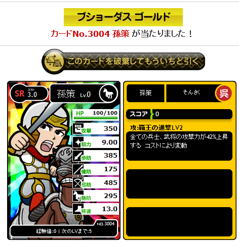 コス3タイシジに、スタート時に嬉しいUC諸葛亮、R大喬にSR覇王、4コスURというありえへん引き。