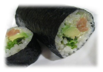 本来は、七福神にちなみ、かんぴょう、キュウリ、シイタケ、伊達巻、うなぎ、でんぶ等の7種類の具を入れて、福を食べるという意味合いもあるらしいですが、今日は家にある材料で急遽作ったので”カリフォルニア恵方巻き(笑)!になりました。具は、レタスとアボカド、スモークサーモン。食べやすいように細めに巻いてみました。作り方は、あらじめ棒状に切ったアボカドをマヨネーズであえておき、少しわさび醤油もからめておきます。(恵方まきは丸ごと食べるのでお醤油をつけながら食べられないので、しっかり味付けしておきます)あとは、寿司飯にレタスをおき、クリームチーズを少量のせて、アボカド、サーモンをおいて、巻くだけ!炒った白ゴマを寿司飯に少しふっておくと香ばしくておいしいです♪スモークサーモンの代わりにエビやカニ、ツナなどでもおいしくできると思います。