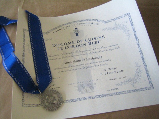 コルドンブルーの広告かなにかで、”コルドン・ブルー”のディプロムはプロへのパスポートです!”というのを見たことがありますが、これが”プロへのパスポートかぁ・・”と関心するくらい立派なディプロムです(笑)!早速額装して飾りたいと思います