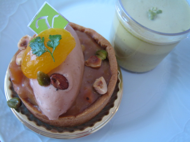 定番のクレーム・ピスターシュとシェフお薦め(と書いてありました)のキャラメルのタルト(正式なお名前わすれてしまいましたぁ・・・)