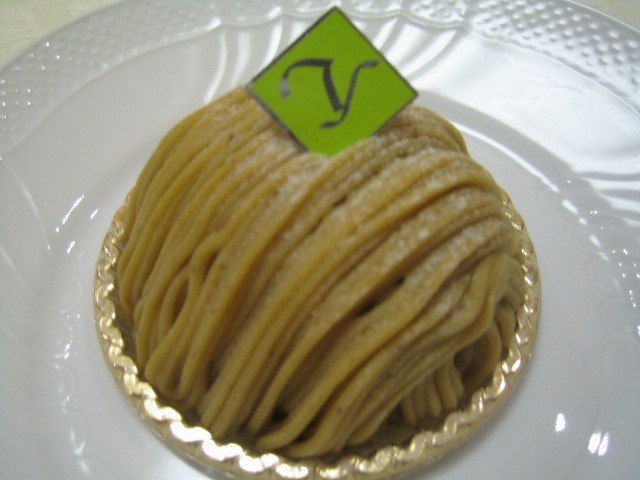 最後は"ユング・フラウ”という和栗を使用したモンブラン。モンブランは2種類ありますが、私はこちらのほうが好き。真ん中にはたっぷりの生クリーム和栗が1粒。下はさくさくのシナモン風味のメレンゲです。これも、いつ食べてもおいしい!