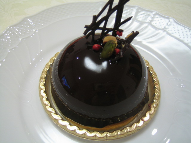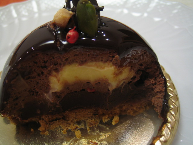 ヨロイズカさんのスペシャリテの”ジャンピエール”というチョコケーキの中身の部分をピスタチオのクレームブリュレから黒胡椒の効いたブリュレに変えたものだそう。