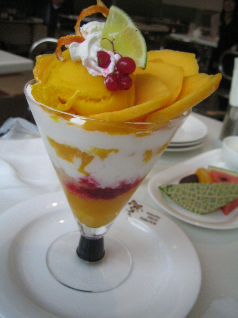 いつもは、定番のメロンパフェを食べますが、期間限定のマンゴーもおいしいです。