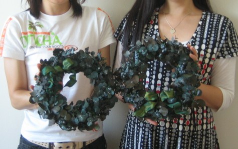 グリーンリースは、季節によって、ユーカリやスギ、ジュニパーなど種類を変えておつくり頂いています。