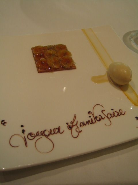 この時のランチは、3人中2人がお誕生日月だったので、フランス語でHappyBirthday!と入れていただきました。このデザート、スパイスがとても程よく効いていてとっても私好みでした