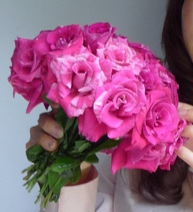 今、実はお仕事で関西のほうにいるのですが、実家で作ったスパイラルブーケです。(撮影by 母)今回は、お生花です。