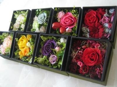 アレンジがいろいろと、母の日用のオーダーアレンジ、あとは同じくスクリーンに送るアクリルBOXを使ったバラ1輪のアレンジなどなど、われながらたくさん作りました♪お写真はスクリーンのBOXアレンジですが、こちらはいろんな花材を使って、すべて1つ1つ違うものを作っています!