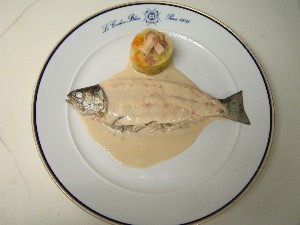 ピノーという甘いお酒と生クリームの入ったソースで、とってもあま~い!甘いソースをお魚とあわせるのは、少々抵抗がありましたが、食べてみると、こんなあわせ方もあるんだな・・という感じ。でも、地味なお料理だし、同じものをもう一度作ることはないかも・・(笑)