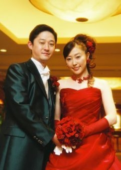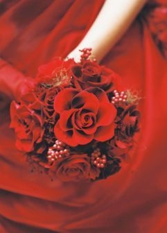 真紅のドレスと真紅の薔薇がとってもお似合いです。