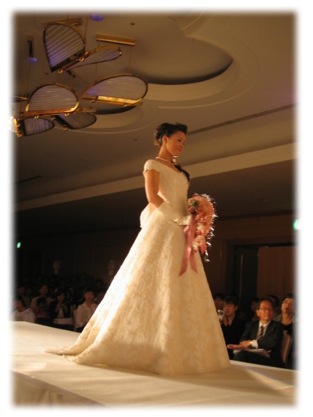 今回、日本プリザーブドフラワー協会として、ショーのほうでブーケを出展することとなりましたが、実は、私にとっては、ショーのブーケを製作するのは今回が初めてのこと。当日の朝、搬入に行った際に、他の出展者の方々の巨大なブーケを見て固まってしまいました・・・ほとんどのブーケが私のブーケの倍近くの大きさでした。少し小さすぎたかなぁ・・・と思いましたが、私のブーケ作りの基本は、自分自身が”これなら持ちたいな”と思えるブーケ。コンテストなどの際に、少し斬新なものや変わったものがうけるんだろうな・・と思っても、決して変り種ブーケは作らない。それは今まで自分の中で守ってきました。今回のショーでも、おそらく大きめのものや、斬新なものがいいのかな。。とは思いながらも、今までの信念を貫きました。でも、ショーに何度も出展されている有名アーティストの方々のブーケを見るにつけ、やはり照明に照らされたきらびやかなショーの会場では、ブーケ自体は大きくなくても長いリボンをつけたり、きらきらひかるラメをかけたり、ショーにはショー向きの作り方があるんだな・・まだまだ私も不勉強!と心の中で反省していました。でもそれと同時に、来年も是非機会があれば、もっと勉強して会場から歓声の出るようなブーケが作りたい!という意欲が沸いてきました!そんな少し複雑な心もちの私でしたが、ショーの後、ブーケを搬出しようとしていたところ、1人の女性が私のほうに近づいてこられました。その方が、”このブーケの制作者の方ですか?”と聞かれたので、”はい。そうです”とお答えすると、”今日のブーケショー、1部も2部も見ていましたが、私はこのブーケが一番心に残りました。派手なブーケよりも実際に持ちたいと思えるブーケでした。作られた方にお会いできて本当に嬉しいです”と、たいへん嬉しい言葉をかけていただきました。私にとっては、今回のブーケは、気に入ってはいたものの、ショーのブーケという点では、反省点はたくさんあり、今後の課題がたくさんあるな・・・と思っていたこともあったので、その女性の言葉はとても心に染み入り、思わずウルッときてしまうほど嬉しかったです。その時一緒にいた同じ協会の認定教室の先生も、”こういう言葉をかけてもらうと、本当にお花をやっていてよかった~って思うよね。感動するよね~”と言っておられましたが、本当に制作者としては、なによりのお言葉です。今回いただいた言葉を胸に、次にショーに出す際には、今回よりも少し大きめのものになるかもしれませんが、今回同様、実際に花嫁さんが持ちたくなるようなブーケ!という大前提を崩さず、素敵なブーケを作れるようにこれからも勉強に励みたいと思っております。