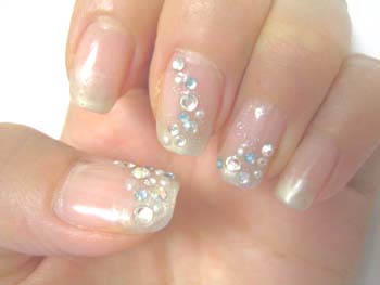 今回は、夏なので白のグラデーションに白とブルーのラインストーンを置いていただきました。次回は3Dにしようかな・・・