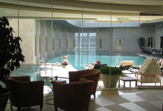 こちらはなんと、プール!!フロアを入ると真ん中にさきほどのソファースペースがあり、その左側にレッスンスペース、右側がなんと、このプールというつくりなのです!レッスンをやめて、みんなで泳ぎましょうかと思わず言いたくなるほどの気持ちのよさそうなプールでした!今回のレッスンでは、”プリザーブドフラワーがはじめて!”とおっしゃるサイトさんが殆どでしたが、みなさんとても集中してレッスンに取り組んでいただき、最後にはとても素敵な作品をお作りいただけました。日本で御指導しているのとは違って、とても独創的なセンスをお持ちの方もおられ、ご指導している私のほうもとても勉強になりました。又、レッスン中、レッスン後にみなさんといろいろとお話もさせていただけ、とても貴重で楽しい経験ができたと思っております。今回、ご参加いただいた皆様、本当にありがとうございました!そして、今回のレッスンに際しましては、たまたま香港で売られていた”花時間”に掲載されていた私のブーケをご覧頂き、わざわざ香港からレッスンを受講しに来ていただいた”Naomi”さんの多大なるご尽力により実現したものです。現地でのレッスン場所の選定から告知まで全てにわたりご協力いただきました。この場をお借りして、Naomiさん、そしていろいろな面でお世話になりましたご家族のみなさまにも心よりお礼を申し上げたいと思います!