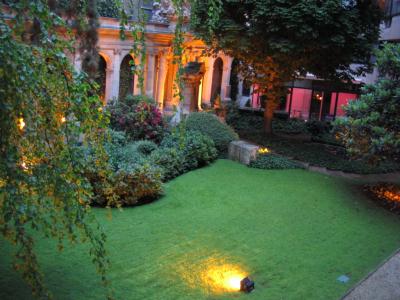 パリへは、2年ぶりの訪問になりますが、今回で4回目のパリ訪問ですが、上のお写真でご紹介しているシャルルドゴール空港の空中スロープ(とでもいうのでしょうか)を通ると、あぁ・・パリに来たな!という実感が沸く私です。職業柄か(口実!?)・・半分趣味でもあるのですが、世界の色々場所を旅する私は、実は、ちょっとした空港マニアでもあります。色々な空港を訪れていますが、シャルルドゴールは、とても古い空港ですが、その古さを感じさせないモダンなデザインで、さすが・・パリ!と思わせる素敵なエッセンスがいっぱい。この空中スロープなんて、当時は、本当に斬新だっただろうなぁ。。と空想にふけってしまいます。空港って、世界の色々な人の玄関口で、特に私のような旅人にとっては、これからはじまる旅のスタートライン、飛行機も大好きですが、空港に降り立つ瞬間、旅の実感がぐっと沸いてきます。今回、ご一緒しているKanachanに言わせれば、そんな見方をしたことはなかった!ということなのですが、旅の始まり、飛行機から降りて、ほっとした後に、ちょっと空港をそんな好奇心を持った目で見てみるのも楽しいのではないでしょうか。・・と、空港話はこれくらいにして。パリの本日のお天気は、曇り。日本を出る前のお天気情報では17日、18日が曇りのち晴れで、残りの5日間はすっかり雨になっていたのですが、今朝のお天気情報によると、24日までほとんど晴れにかわっていました!ラッキー!実は、私、自他共に認める晴れ女なのですが、今回も、晴れ女伝説を継続できてよかったです♪今回のステイ先は、高級住宅街といわれる16区のショートステイフラット。いつも、だんなさまと一緒のときは、大きなホテルしか泊まらないのですが、今回は、女の子同士なので、いつもと趣向を変えてみました。フラットというと、分かりにくいですが、7泊くらいからステイできる短期貸しのマンションみたいなものです。最初は、少々不安でしたが、ついてみると、とっても素敵な場所でびっくり!中庭に面したお部屋なのですが、中庭がパリ市の文化財にしていされているというだけあって、本当に素敵♪しかも、夜も12時までライトアップされていたりします。もちろん、私有地になるので、一般の方には入れないのですが、ステイしていると入れるので、これから、少しお庭をお散歩する予定です。お写真は、お部屋の窓からの景色です。