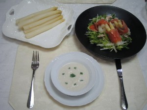 ・・ということで、先日のお料理を思い出して、同じメニューを作ってみました。アスパラづくしです♪