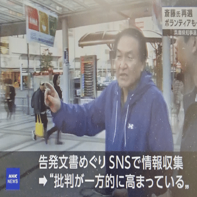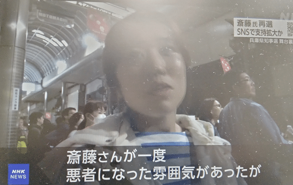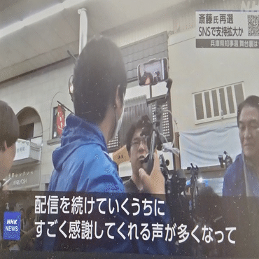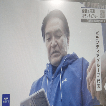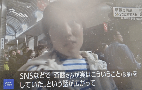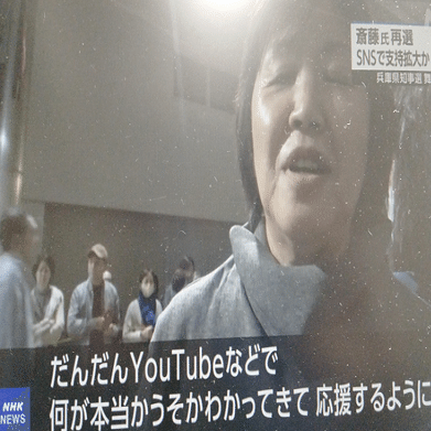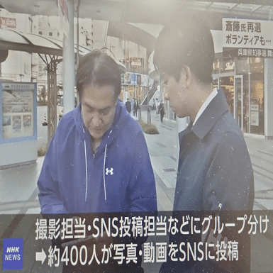 11/18 のNW9の報道では、続いて、明石駅前でインタビューを受ける青いアンダーアーマーの上着を来た男が登場、斎藤元彦を応援するボランティアグループの代表だと紹介された。SNSで立ち上げた「チームさいとう」に900人のメンバーを集め、現場の撮影担当やSNS投稿担当などに分かれて400人のデジタル・ボランティアが精力的に運動を展開、斎藤元彦の支持拡大と勝利に大きく貢献したと言う。この代表の男は何者なのか。400人のボランティアなる者たちの素性は何なのか。今後、詳しい調査と解明がなされるだろうが、やはり7月の都知事選の石丸現象で目撃した構図とよく似ている。選挙のパターンとして同じだ。石丸伸二を応援した軍団については、石丸伸二のカリスマ剥落と共にネガティブな評価が定着した感があるけれど、この斎藤現象のボランティアについては、「ネット民主主義の草の根勇士」的なポジティブな表象でNHKが報道している。勝てば官軍。