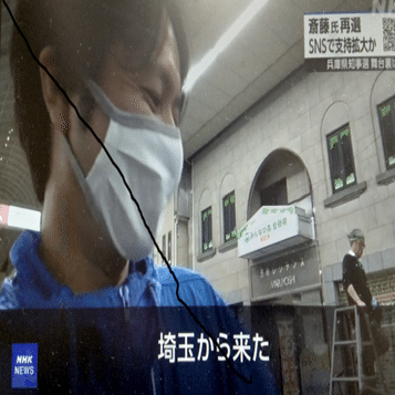 投票翌日、11/18 のNHK・NW9には興味深い映像が紹介されていた。11/17 夜に元町の斎藤元彦の事務所前に集まった支持者群衆の中に、埼玉から来て斎藤元彦を応援活動する若い男性がいて、斎藤元彦の選挙運動を撮影し、動画配信していて、NHKのインタビューに答えていた。雰囲気的に普通の市民には見えない。長い選挙期間中ずっと神戸に張り付いて県内を移動していたわけで、ほとんど半プロの身であり、宿泊費等経費はどう用立てていたのだろう。この情景には見覚えがある。7月の都知事選で全く同じ絵がNHKのニュースで放送されていた。やはり、遠隔の地方からやってきて東京に長く滞在し、半プロ的な装備で石丸伸二を撮影し、動画を編集して配信していた男たちの姿である。瓜二つだ。斎藤元彦に密着して運動した部隊の謎については、さまざまな指摘があるが、週刊文春の記事によると、石丸伸二の選挙参謀が「ウチの部隊も30人参加させた」と豪語したとある。