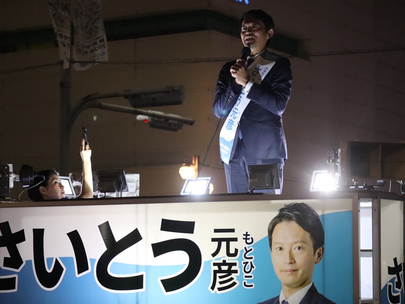 選挙最終日の斎藤知事 左に折田氏の姿が (c) 現代ビジネス