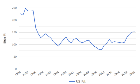 アメリカが輸出志向になる際に重要なのはドルの価値だ。私が小学生だった1980年代前半は、日米貿易摩擦が激しかった頃で、親や先生が時事解説として、色々と教えてくれた。「どうして1ドル235円が230円になったら円髙で、逆になったら円安って言うの?」というところから始まって、輸出や輸入について簡単に教えてくれた。そこで、子供心に「日本は円安の方が良い、それは日本の自動車や電気製品がアメリカや諸外国で売れやすくなるからだ」ということが刷り込まれた。これを敷衍すれば、トランプが求めているのはドル安だ。しかし、現在はドル高の状態にある。ドルの購買力が高く、輸入品が安く入ってくるが、輸出はしにくいということになる。為替を何とかしなければ、関税だけでは、輸出のしにくさや貿易赤字を解消することはできない。