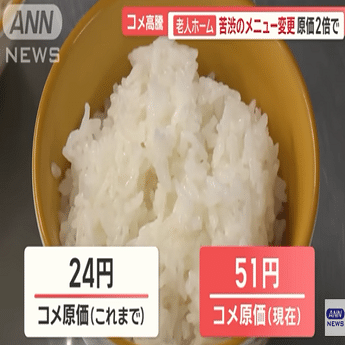 コメの価格は1年前の2倍以上になっている。物価高のため、実質賃金は下がり、年金収入は目減りし、節約を強いられた日本人の家計消費支出は2年連続で減っていて、特に食料品への支出が前年比で1.0%マイナスになっている。エンゲル係数は43年ぶりの高水準となった。この3年ほど食料品もエネルギーもあらゆる物価が高騰する中、自給率100%のコメだけはありがたく価格が安定し、頼りになる庶民の生活の味方だった。そのコメが昨年から1年の間に1900円から4200円になった。低所得で食べ盛りの子どもを持つシングルマザーの家庭には苛酷な状況だろう。日本人一人当たりのコメの消費量は年間51キロ。50年前の半分の量に減っている。月に4.2キロ食べる計算になる。5キロが1900円から4285円となった価格を4.2キロに換算すると、2000円になる。つまり、一人当たり毎月2000円の出費増なのだ。