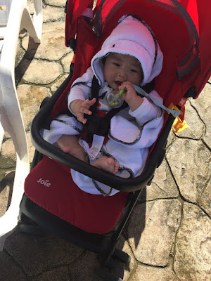 今日のお洋服はGAP のフーディ + Ralph Lauren のロンパース