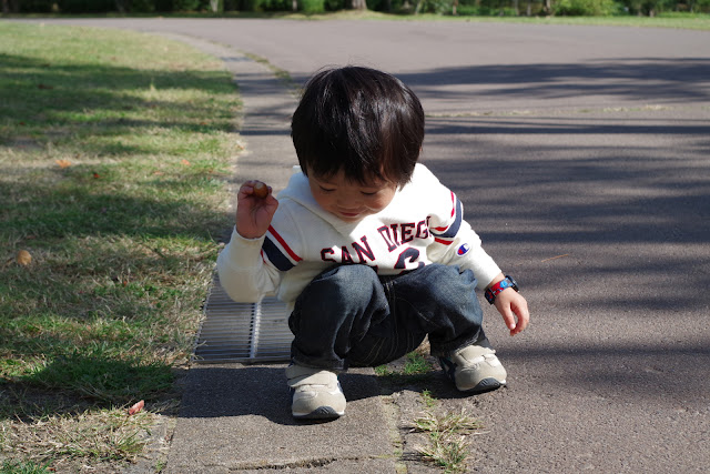 ドングリを見つけて側溝に入れようとしていたから、側溝が詰まるよと教えてあげました