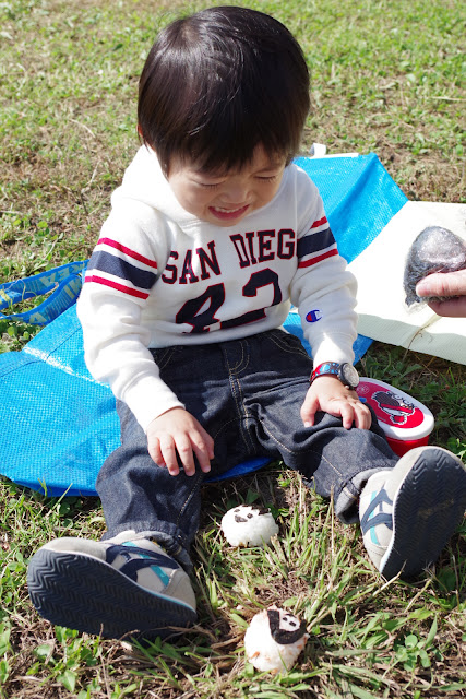 着いてちょっとしてからランチにしたんだけど、食べる前におにぎりを落としてしまって大泣き