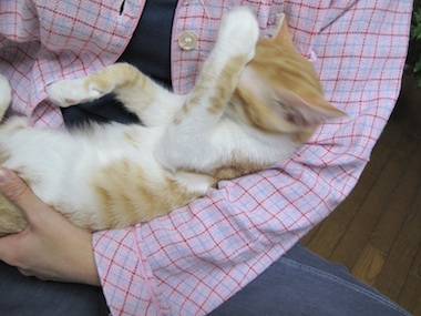 バイバイQちゃん今日ワクチン接種に獣医さんに行ってびっくり!ずっと男子だと思ってたQ太郎は「女子」でした。本日紫波町のお方に貰われて行きました。どんな名前になるかな新しいおうち,先輩猫、新しい飼い主さんに慣れてくれればいいな。