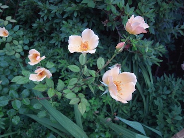 夕方からホッと・・「Mrs.オークリーフィッシャー」日差しのような色合い。暑いのですぐ散ります。昨日は大変な暑さでした。今朝もジメジメで大変でしたが、夕方から急に風が冷たくなりました。前の日記のブルーベリーをヒヨドリが二羽来て食べてる~~